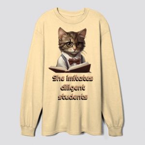 A beautiful kitten who loves reading,this simple design is for lovers cats.sweatshirt design.Delivry in Morocco.Merchy.ma