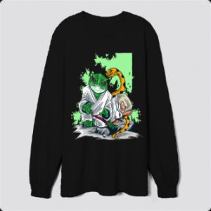 يالله شوف معايا هاد الكومبو الخطير! تصميم كيحمق فيه ضفدع نينجا لابس كيمونو، حرباء داير بحالو تايه فالعالم، وأفعى كتحسبها شي جاسوسة ففيلم ديال الأكشن. هاد الستيل ماشي لأي حد، غير لّي باغي يبين ستايلو ويخلي الناس تقول: فين شريت هاد الشي؟ مثالي للتيشيرت، ستيكر، بوستر ولا حتى كادو خاسر للصحاب!"