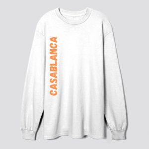 Introducing the epitome of urban chic and contemporary style – the CASABLANCA Vertical Orange Text Sweatshirt. This vibrant yet understated sweatshirt encapsulates a harmonious fusion of modern design and urban sophistication. The striking feature lies in its minimalist design—a vertical arrangement of the word "CASABLANCA" in a bold, captivating orange hue. This stylish typographic choice effortlessly elevates the sweatshirt, adding a touch of vibrancy to its classic silhouette.