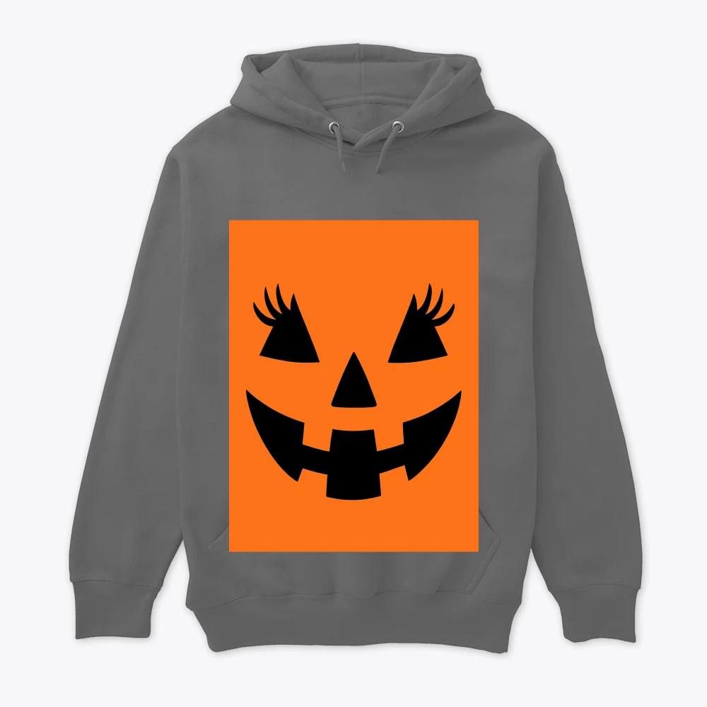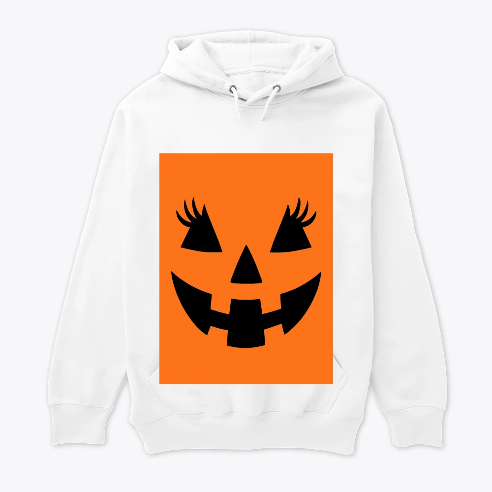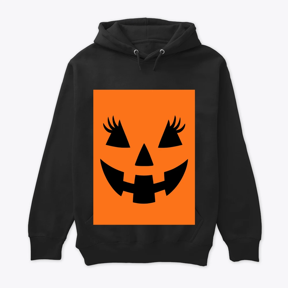A simple and bold Halloween pumpkin face design featuring two triangular black eyes with long, curved eyelashes for a cute feminine touch.