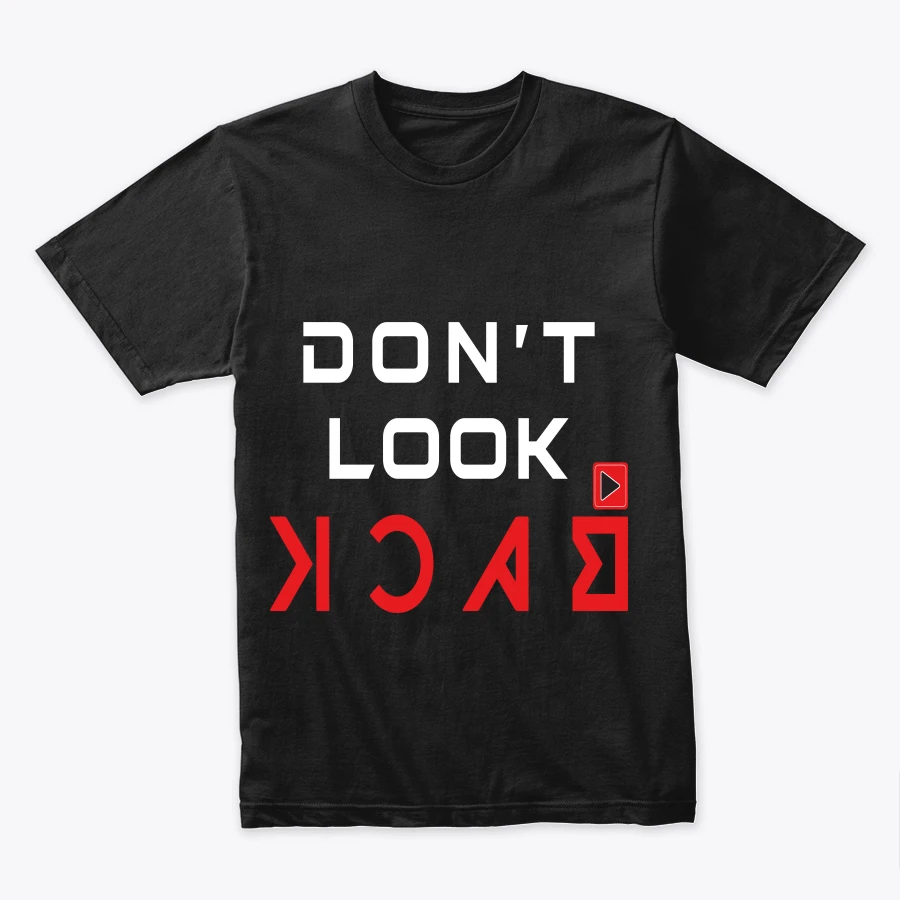 هذا التي شيرت ليس مجرد قطعة ملابس، بل هو بيان قوي وشعار للحياة! صُمم خصيصاً للمتحمسين والطموحين الذين يركزون على المستقبل ولا يلتفتون إلى الماضي. تصميم "DON'T LOOK BACK" يرمز إلى الإصرار و التحرر من القيود.