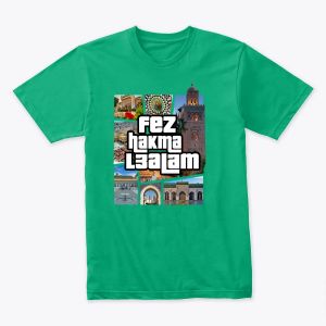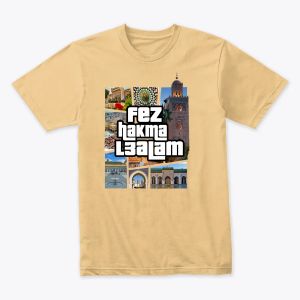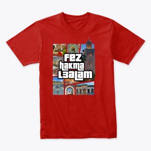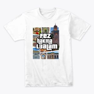 fez Hakma L3alam - فاس حاكمة العالم عبر عن فخرك بمدينة فاس العريقة مع تيشورت "فاس حكمة العالم" المميز. تصميم فريد وجودة طباعة عالية. توصيل سريع ومضمون في جميع أنحاء المغرب.