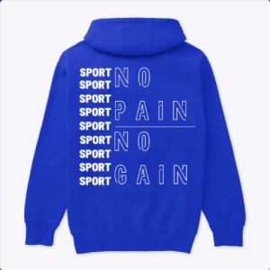 "احصل على تصميم NO PAIN NO GAIN المميز، الذي يلهمك لتجاوز التحديات وتحقيق أهدافك الرياضية. هذا التصميم مثالي لعشاق اللياقة البدنية وكمال الأجسام والجري، حيث يعكس الشغف والقوة. يمكنك الآن ارتداء هذا التصميم على تيشرتات وجمبريات عالية الجودة التي توفر الراحة والأناقة في نفس الوقت. مثالي للصالات الرياضية أو للاستخدام اليومي."