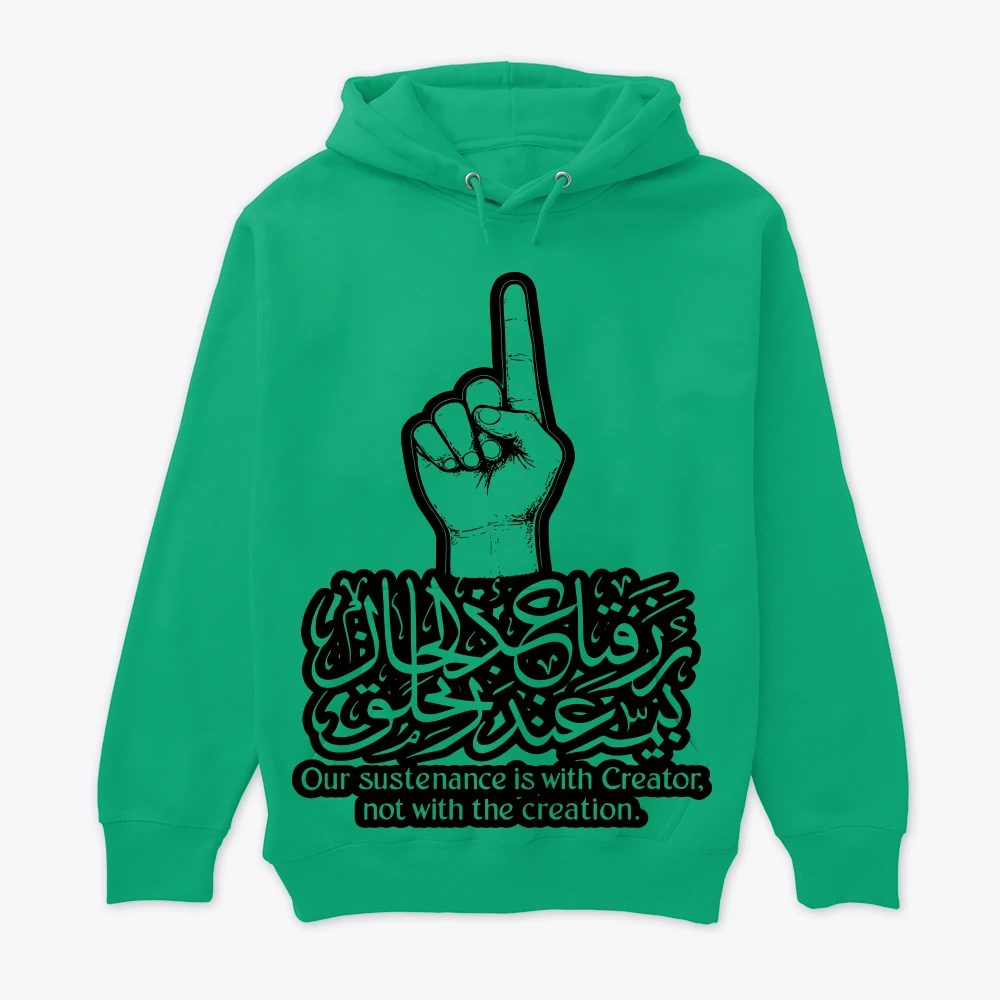 تصميم عبارة عن تحفيز إيماني لكل شخص والإيمان بالرزق في إشارة باليد الى الرازق الخالق ويضم التصميم كتابة عربية كاليغرافيا لكل محب للكتابة العربية