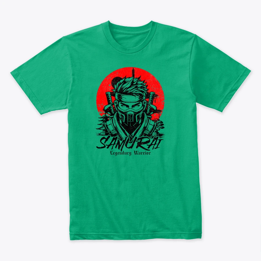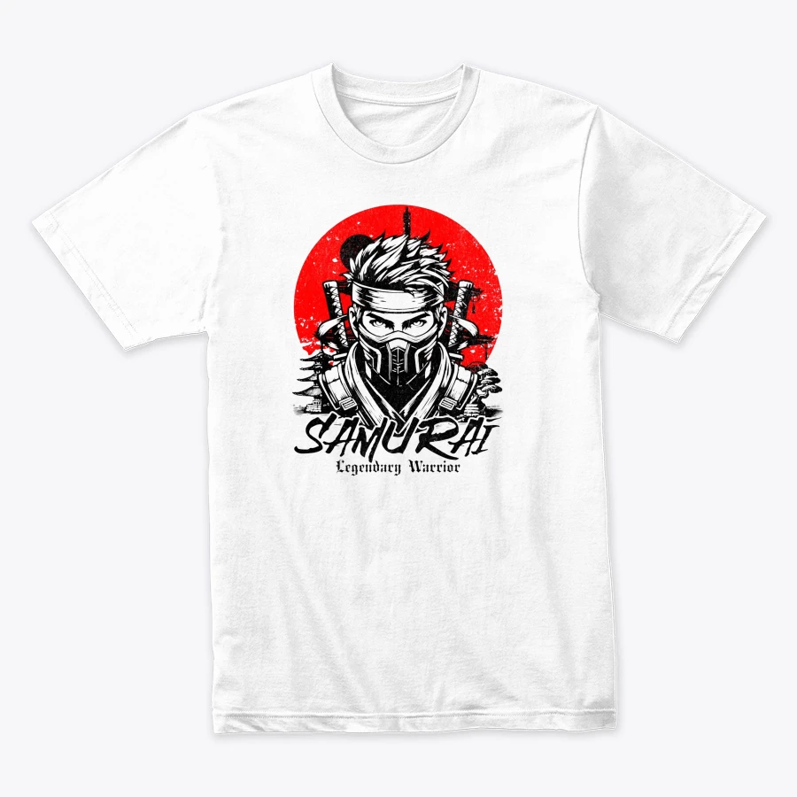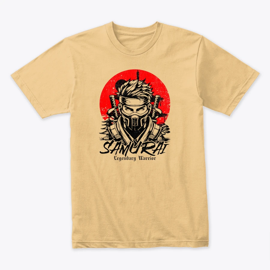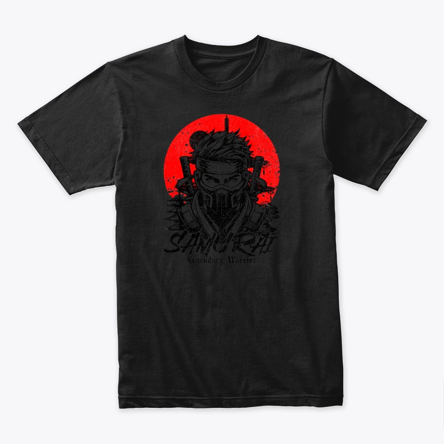 a striking silhouette of a samurai warrior with a detailed menacing look against a red sun backdrop featuring swords and traditional japanese elements