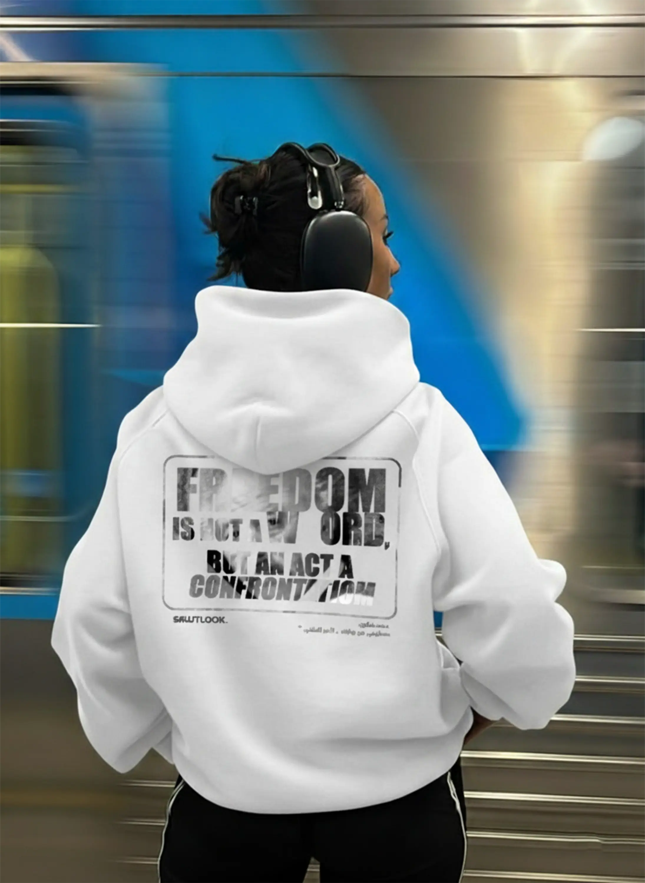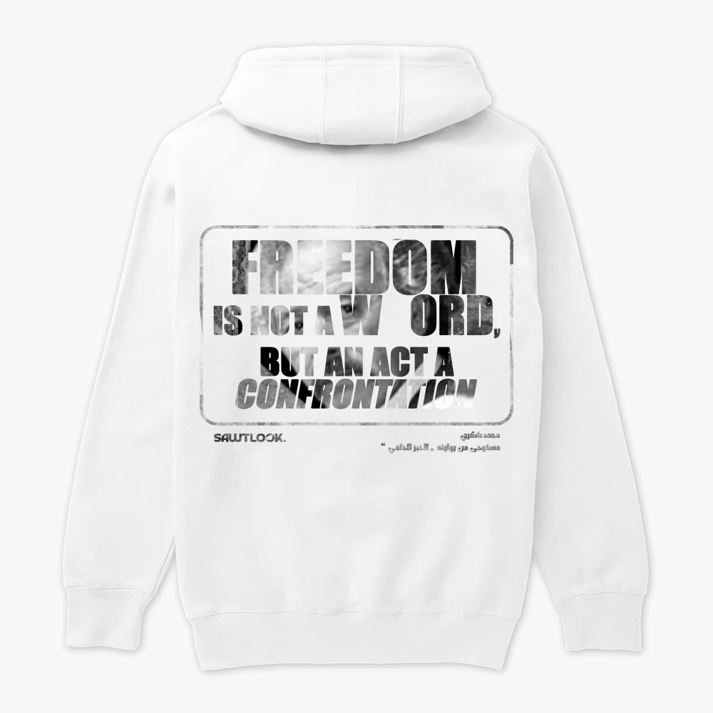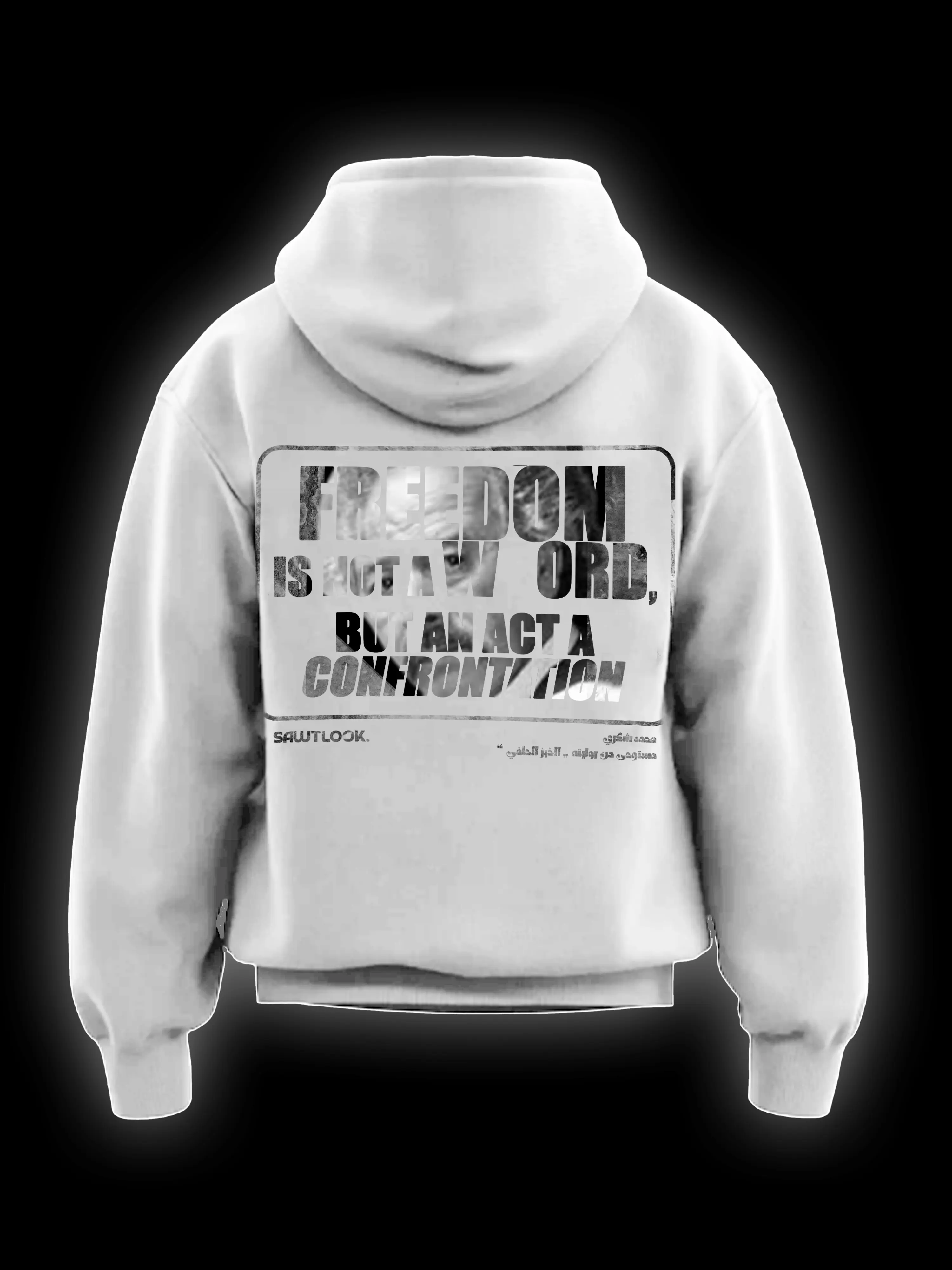 A bold streetwear piece inspired by the spirit of resistance found in Mohamed Choukri’s iconic novel “الخبز الحافي”. The hoodie carries the idea that “freedom is not a word, but an act of confrontation,” echoing the raw honesty and courage that shaped Choukri’s story. Crafted for those who move differently, think independently, and express identity through style. Premium soft fabric, clean minimal design, and a powerful statement graphic printed on the back — a piece rooted in culture, struggle, and the voice of SAWTLOOK.