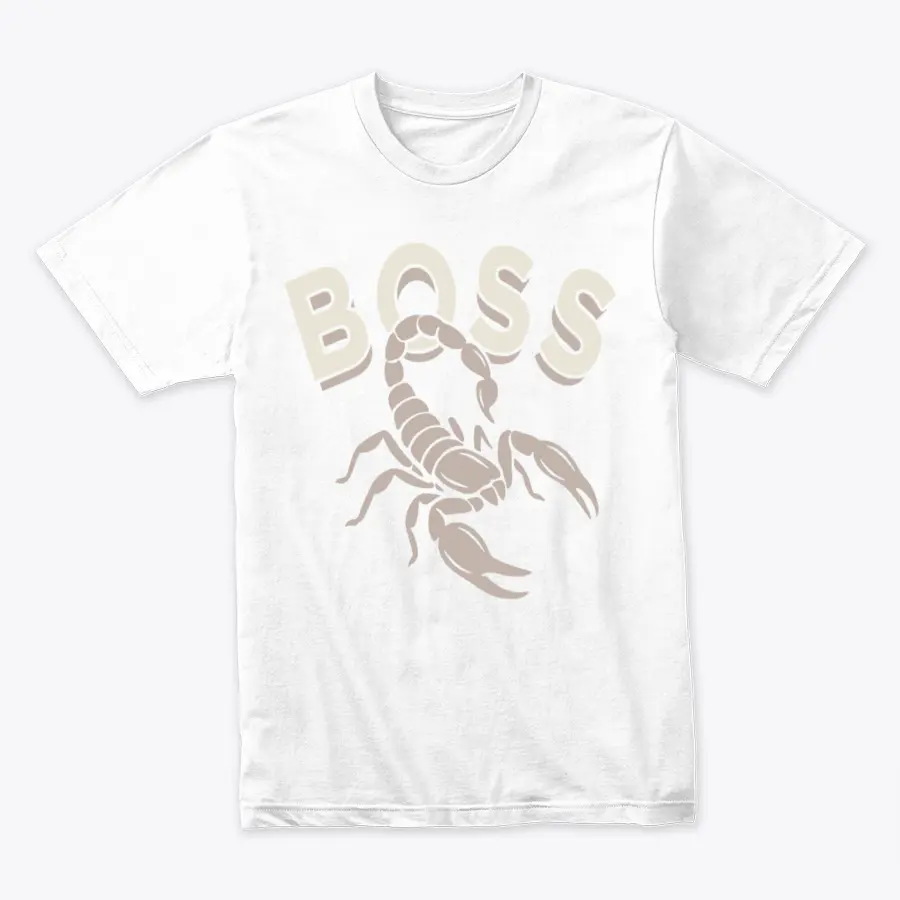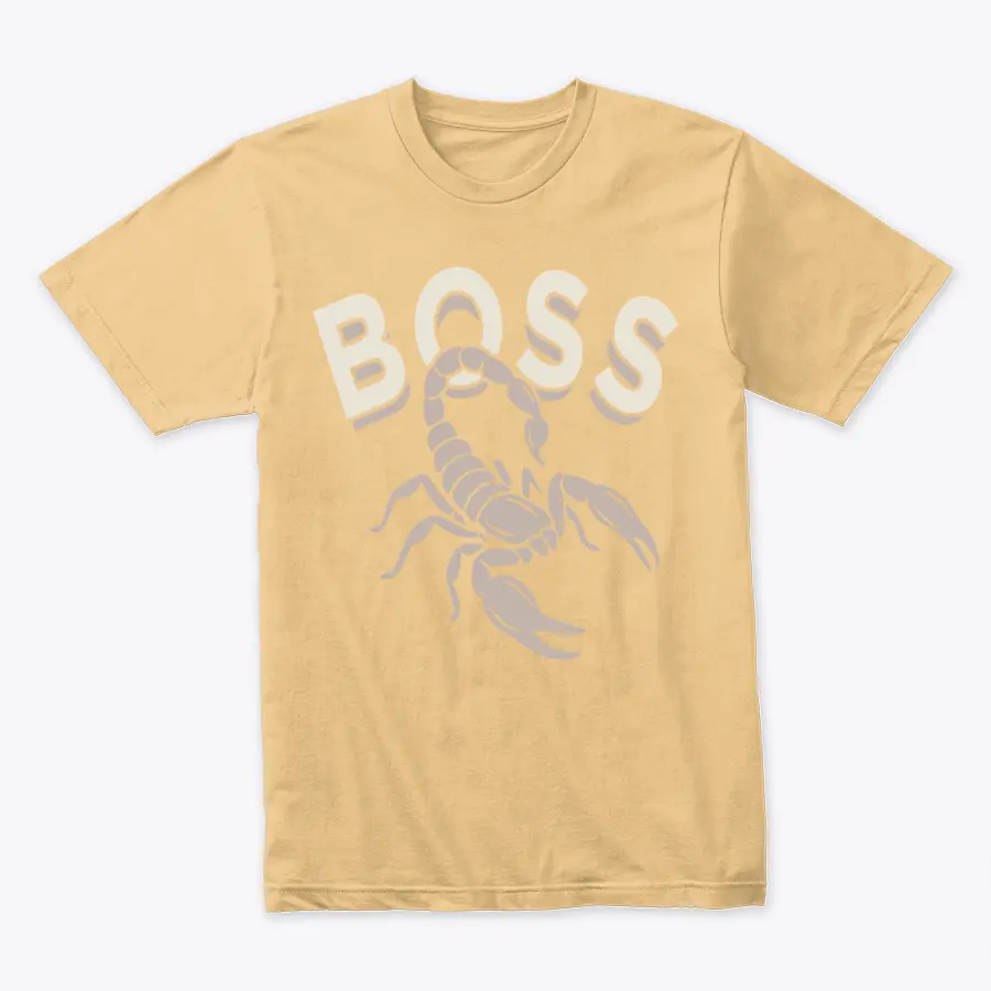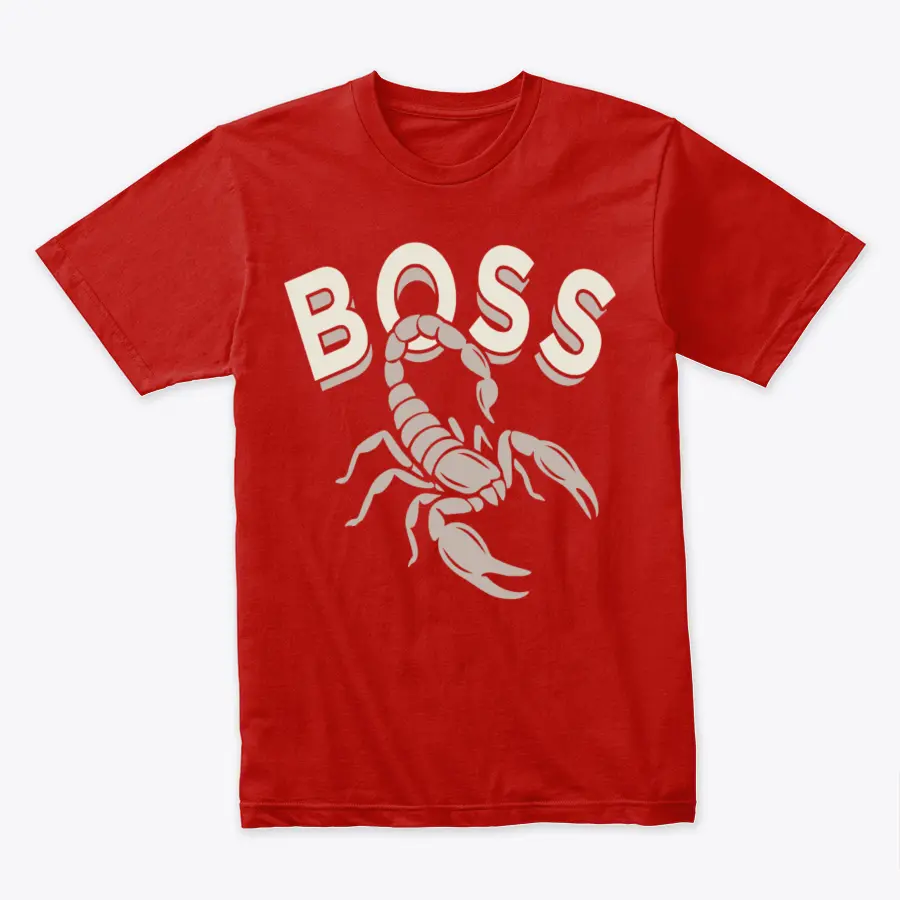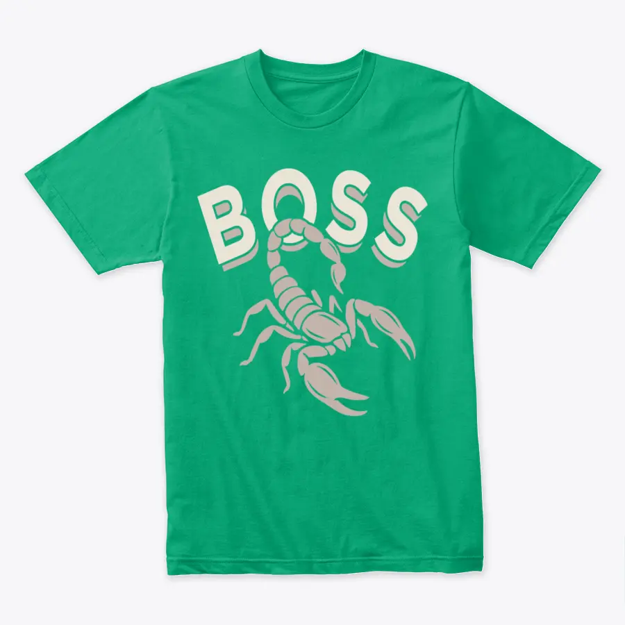 a stylized illustration of a scorpion beneath the word boss depicting strength and authority with a retro design aesthetic