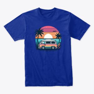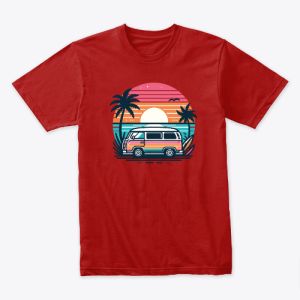 Embark on a “Trip at van” where every sunset marks the beginning of a new adventure. This image captures a timeless journey, with a classic van resting under the soft embrace of the evening sky. The stripes on the van echo, and the surrounding palm trees stand as silent witnesses to countless stories untold.