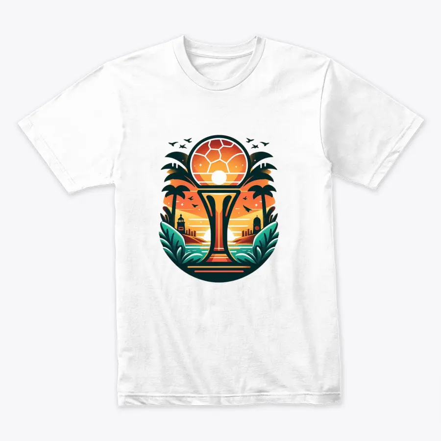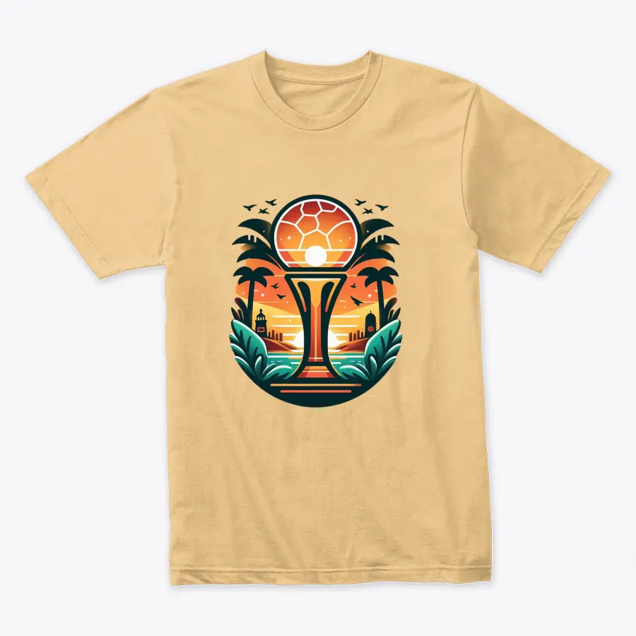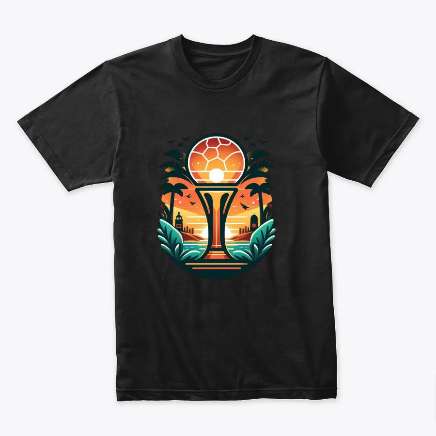 an abstract illustration featuring a footballthemed sunset scene with palm trees ocean and cityscape capturing the warm tropical vibes and leisure