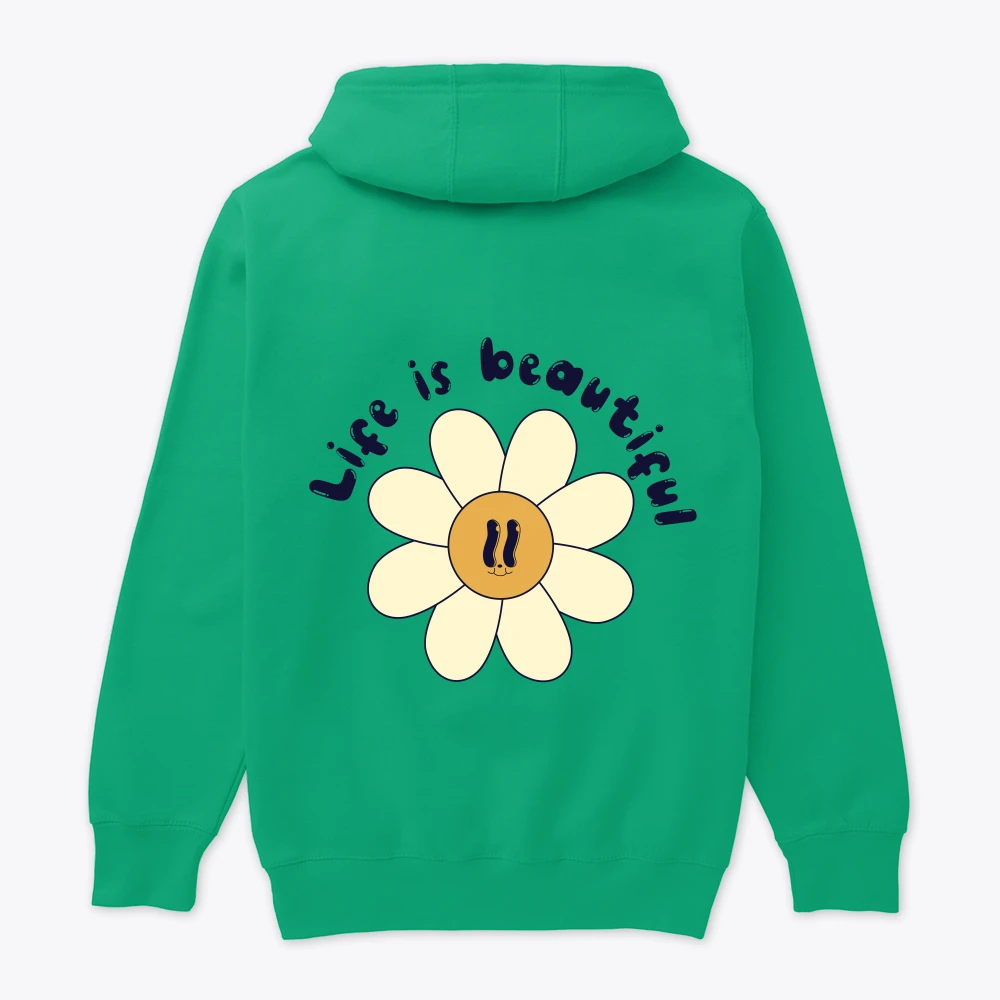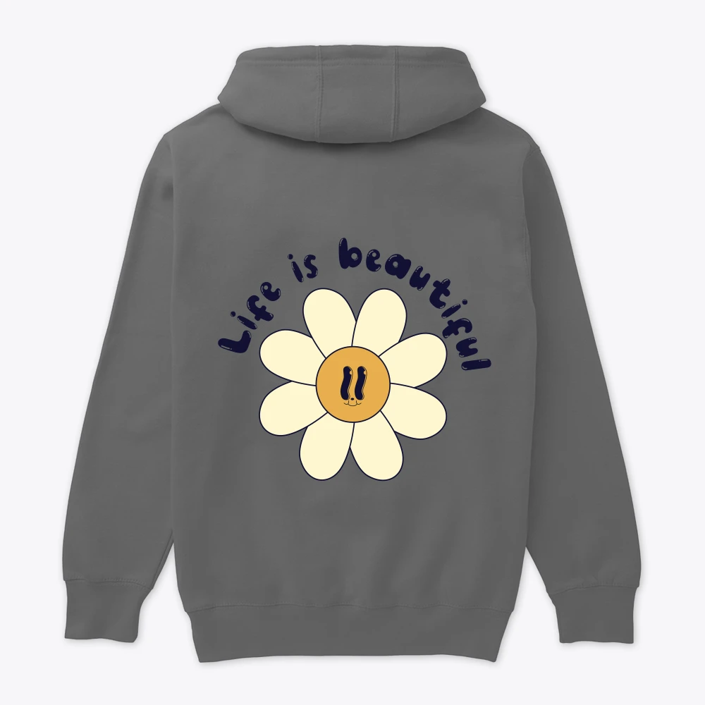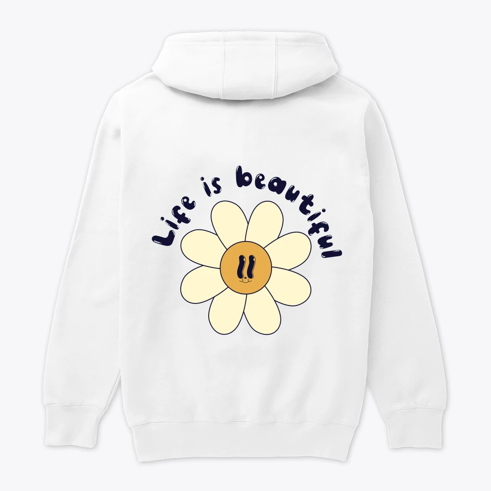 Un hoodie moderne au message positif “Life is Beautiful”, combinant confort, style et attitude optimiste.