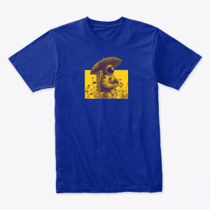 vintage astronaut t-shirt! 🚀 Featuring an astronaut holding an umbrella against a vibrant yellow backdrop, this whimsical print blends space exploration with surreal earthbound imagery. Perfect for sci-fi enthusiasts and dreamers alike.