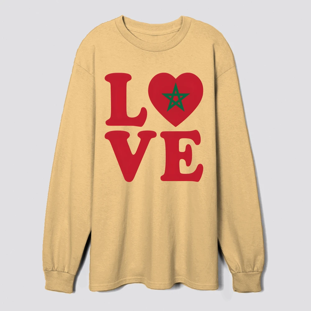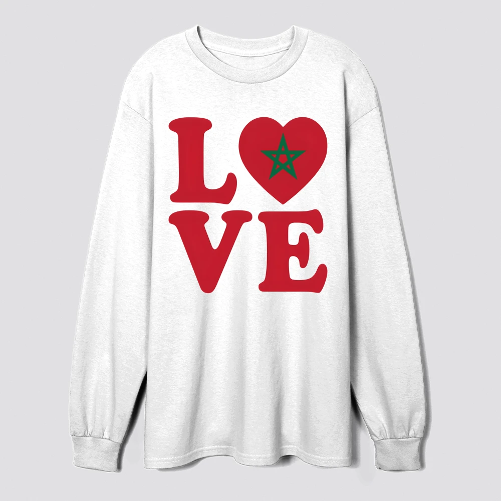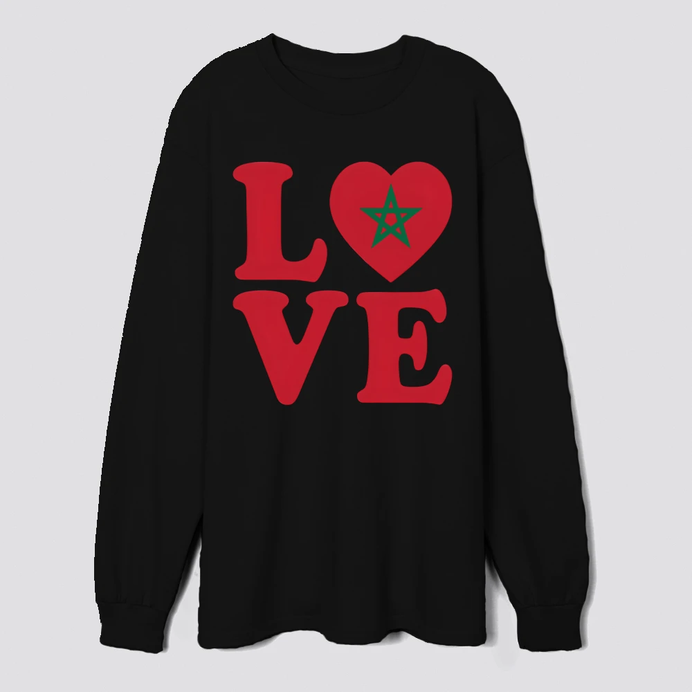the image creatively combines the word love with a heart bearing the moroccan star symbolizing affection and pride for morocco