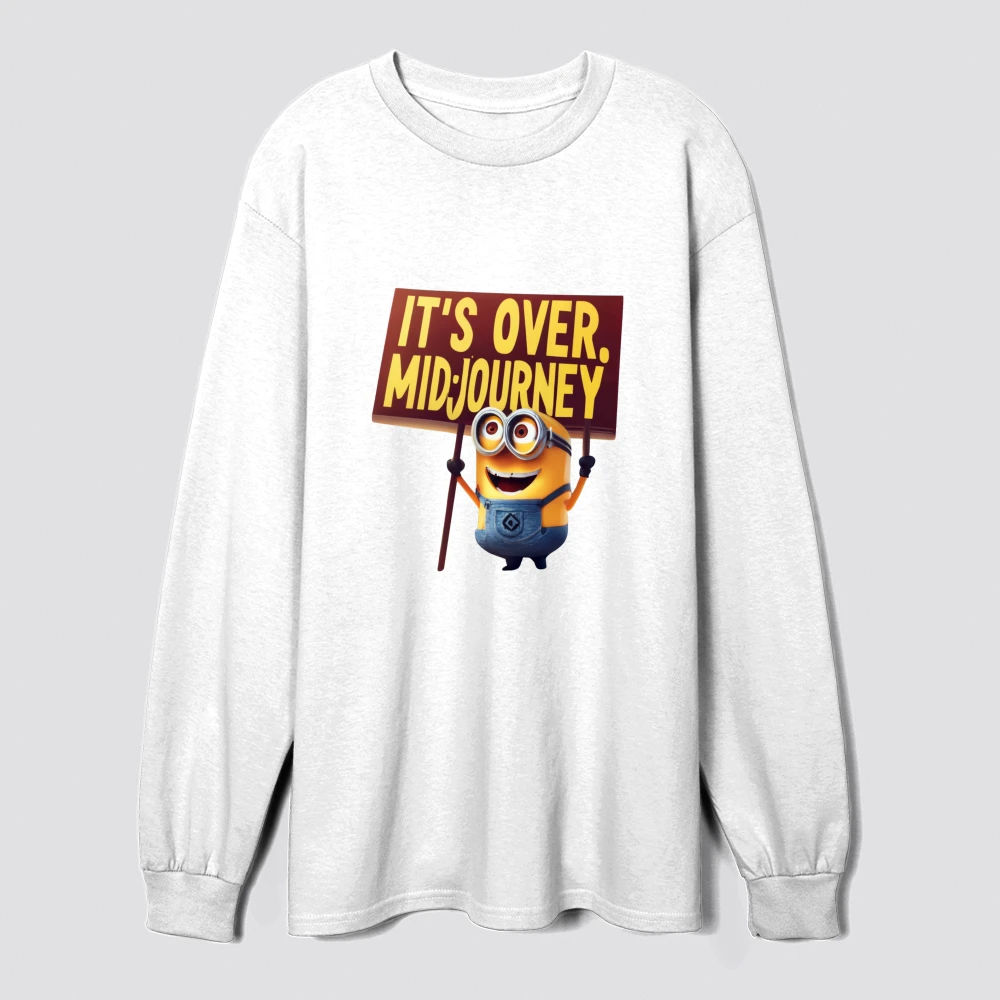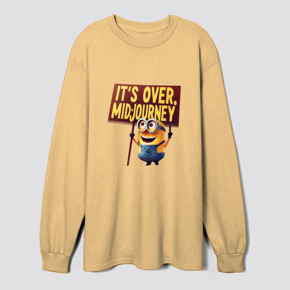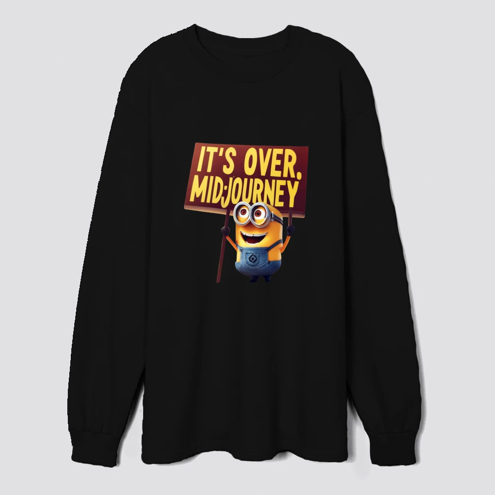 an animated minion joyfully holds a sign reading its over midjourney capturing a humorous and playful protestthemed scene