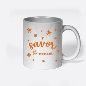 "Savor the Moment" Mug with Tea Cup & Flower Design