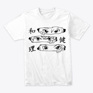T-shirt Anime minimaliste blanc et noir Yeux Attentionné
