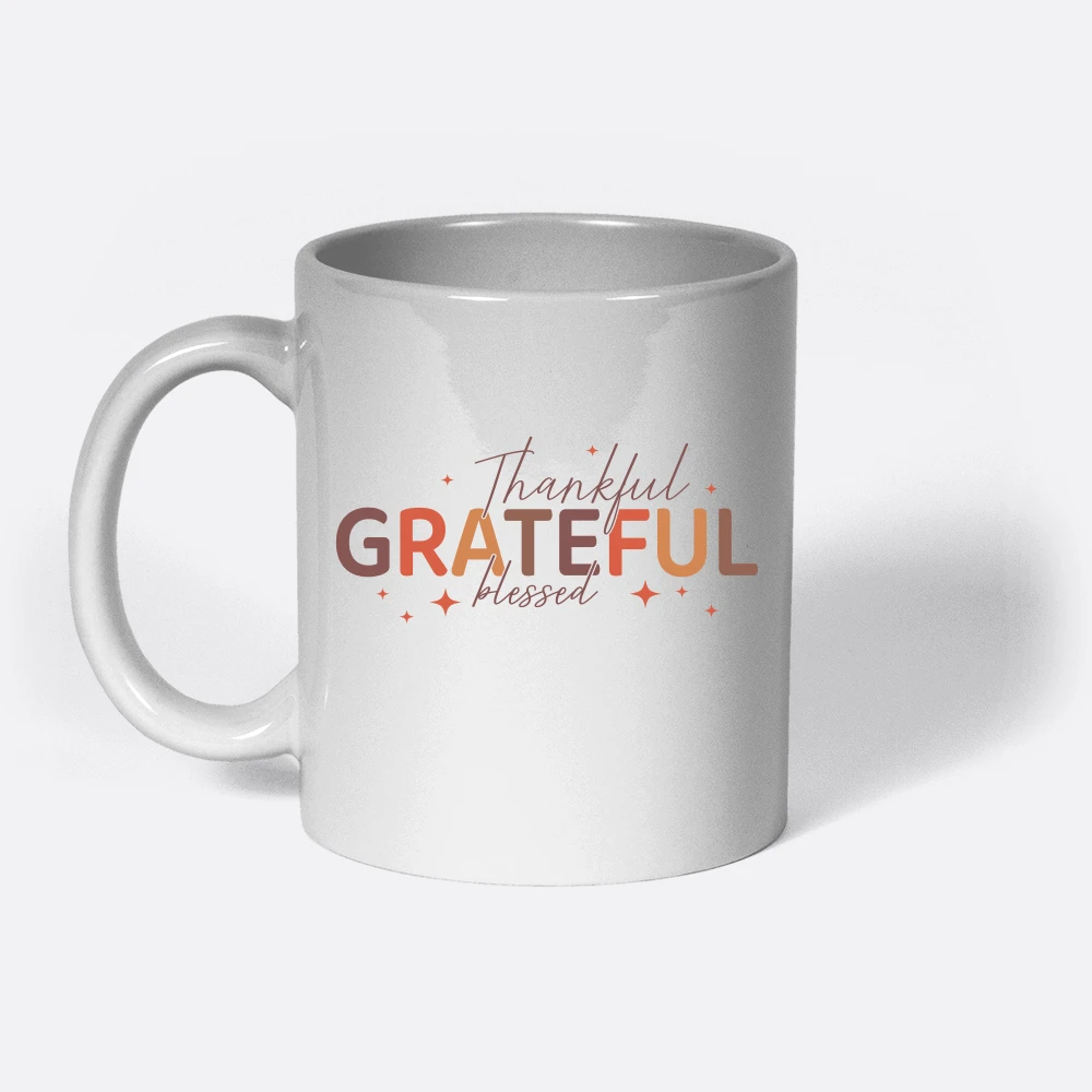 [Eng] Start your day with positivity and gratitude! This beautifully designed mug features the words Thankful, Grateful, and Blessed, perfect for spreading positive energy in your morning routine.