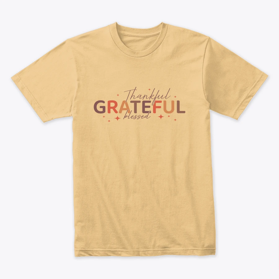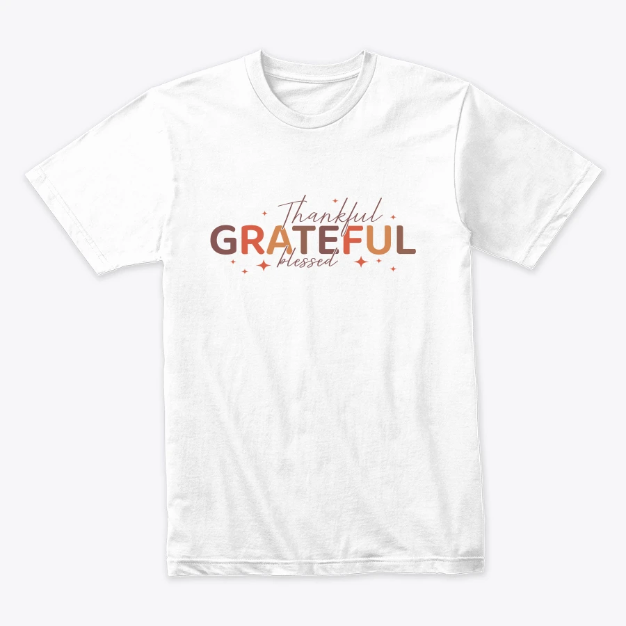 Show off your gratitude with this stylish "Thankful, Grateful, Blessed" T-shirt! Featuring a beautiful, uplifting typography design, this T-shirt serves as a daily reminder to appreciate the blessings in life