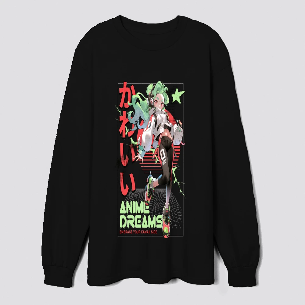 Inspiré par l’anime, un sweat-shirt féminin présente un dessin dynamique d’un personnage de style japonais, avec des éléments graphiques et un texte marqués qui renforcent l’esthétique du design. La pièce offre un look moderne et distinctif, adapté aux amateurs de mode à thème cartoon et japonaise.