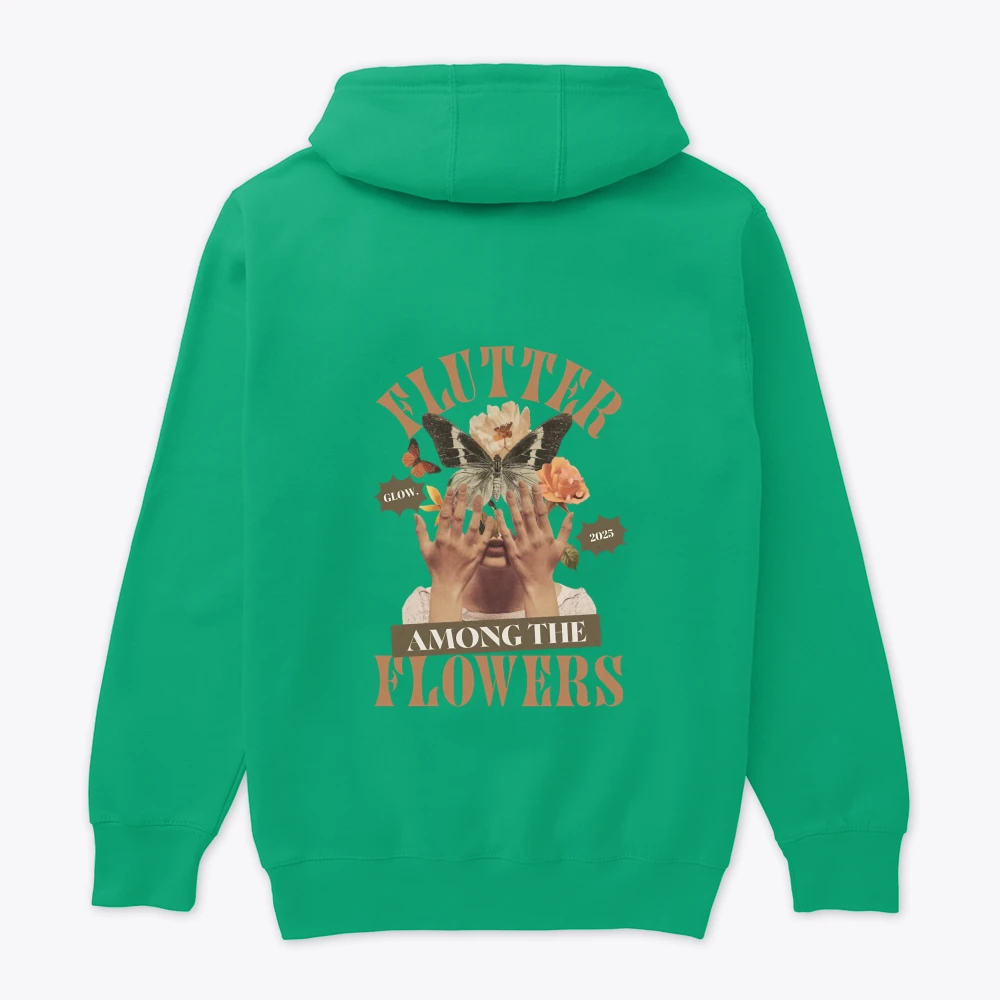 A poetic hoodie that celebrates freedom, transformation, and natural beauty. The front features the gentle phrase “Wildflour Soul,” a symbol of individuality and inner growth. On the back, a dreamy collage of flowers and butterflies radiates vintage charm and artistic energy. Perfect for those who bloom wildly and glow softly — wherever life takes them.