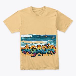This modern abstract design captures the breezy vibe of Agadir’s beaches, surf scene, and relaxed coastal spirit. With sweeping graffiti-style curves and sunlit textures, it’s a fresh tribute to one of Morocco’s favorite seaside destinations.