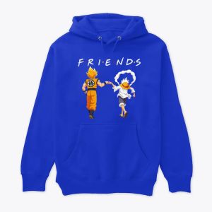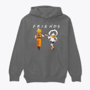 Celebrate the ultimate anime bromance with this playful crossover featuring Goku from Dragon Ball Z and Luffy from One Piece in a fist bump of legendary proportions. Styled with the iconic “FRIENDS” sitcom lettering, this design is perfect for anime lovers who appreciate humor, unity, and powerful friendship.