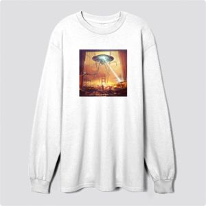 "Apocalypse Overdrive" is a bold Sweatshirt design showcasing a dramatic alien invasion over a burning cityscape. With vivid colors and intense detail, it captures the chaos and urgency of survival, making it a standout piece for fans of sci-fi and apocalyptic art.