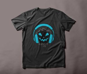 Blue & black smiley sticker face with a big headphones
