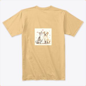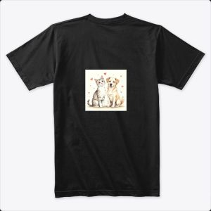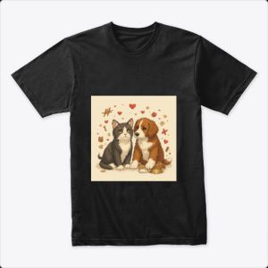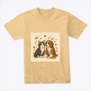 Professional Short Description: This design reflects the beauty of the relationship between humans and their pets, emphasizing the importance of caring for cats and dogs with love and care. The design features elegant artwork of a cat and dog side by side, surrounded by warm details such as small hearts and care items (such as a food bowl, a cat hair clip, or a dog toy
