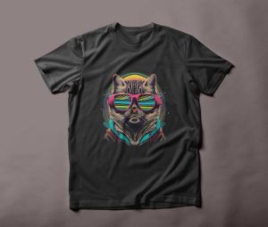 A sleek cat, sporting stylish sunglasses, lounges on a vibrant beach, epitomizing feline coolness amid ocean waves.
