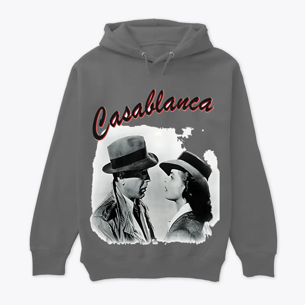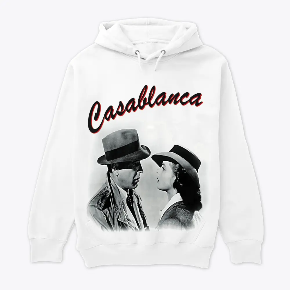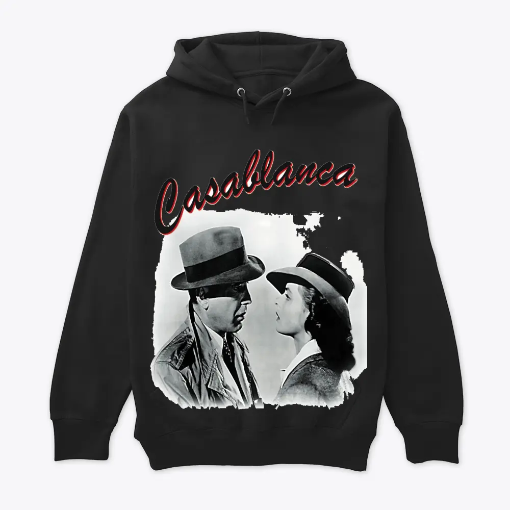 a black and white image from the classic film casablanca featuring two characters in a dramatic gaze capturing the iconic romance and vintage style of 1940s cinema