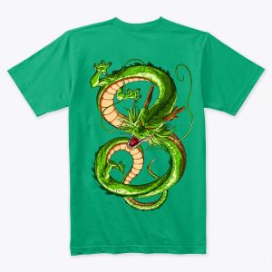 Unleash your inner warrior with this epic Dragon Ball Z t-shirt featuring Goku, Vegeta, Gohan, Trunks, Goten, and Majin Buu, all soaring around the legendary dragon Shenron. Bursting with vibrant colors and dynamic action, this design captures the power, spirit, and legacy of the Z Fighters. A must-have for true DBZ fans who want to wear their passion with pride!