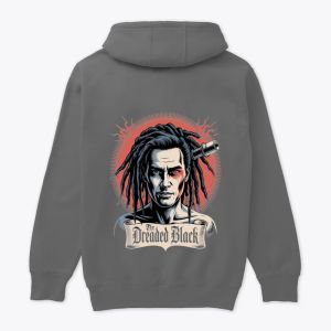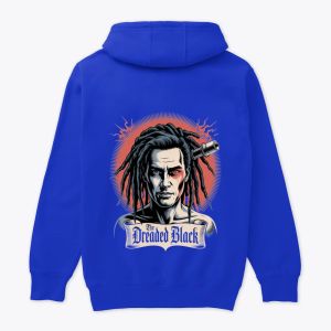 the image features a fierce warrior with dreadlocks and a telescope through his head set against a red sun backdrop conveying a pirate or nautical theme