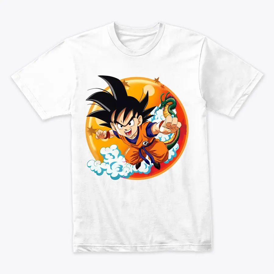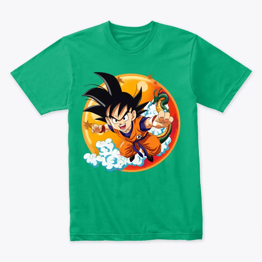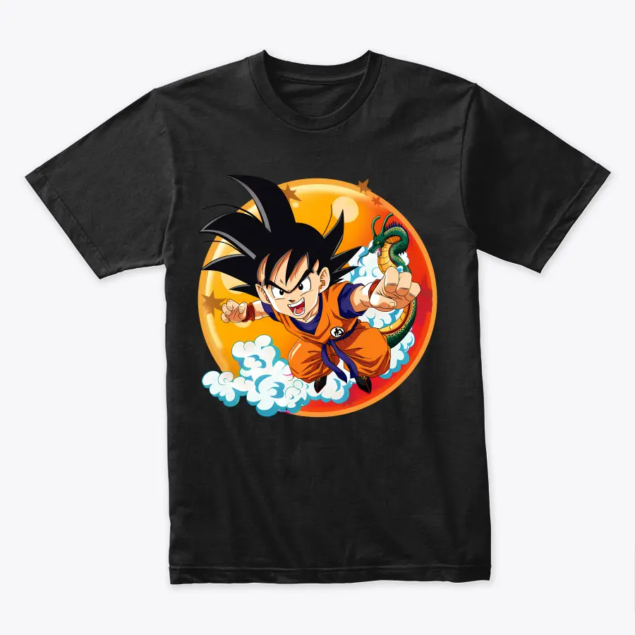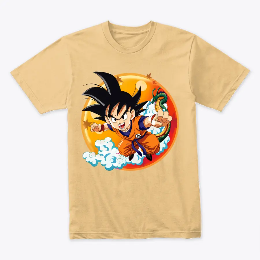 goku from dragon ball is seen flying with a dragon encapsulating a sense of adventure and fantasy against a vibrant backdrop