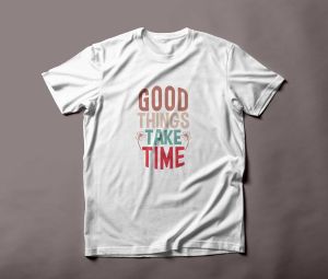 Good Things Take Time' t-shirt, a wearable reminder that life's most beautiful achievements require patience and perseverance. This thoughtfully crafted design captures the essence of progress, featuring an elegant hourglass surrounded by delicate vines, symbolizing growth and the gradual journey towards success. Whether you're tackling personal goals or simply seeking daily inspiration, this shirt embraces the idea that waiting for greatness is a testament to your dedication. Embrace the process, wear the message, and let this design motivate you to keep moving forward with unwavering determination. Because in a world of instant results, we're celebrating the power of patience and the beauty of watching dreams unfold in their own time