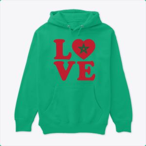 Hoodie "Morocco Love Flag" – Hommage Élégant au Maroc Capuche
