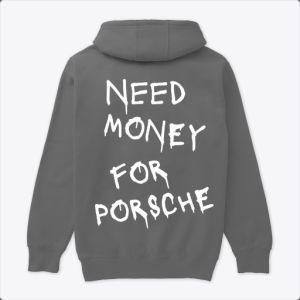 Adoptez un style unique avec notre hoodie noir "Need Money For Porsche" ! Ce sweat à capuche unisexe arbore un design original au dos, idéal pour les passionnés de Porsche au Maroc. Fabriqué à partir d'un tissu de haute qualité, il offre un confort exceptionnel tout en ajoutant une touche tendance à votre garde-robe, parfait pour les sorties décontractées ou les journées au quotidien. Rejoignez la tendance de la mode inspirée par l'automobile avec cette pièce incontournable. Procurez-vous le vôtre dès aujourd'hui et exprimez votre passion pour Porsche tout en restant confortable et stylé !