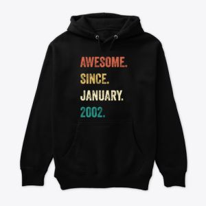 Hoodie Pour Les Gens Agés de 22 Ans Janvier 2024 De Style Retro, Portez le dans une partie d'anniversaire pour les filles et les garçons qui ont une anniversaire en Janvier 2024.Le design contient un texte “Awesome Since January 2002”.