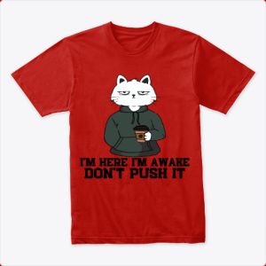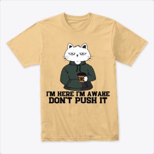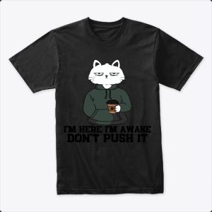I'm Here I'm Awake Don't Push It cat lover Tshirt