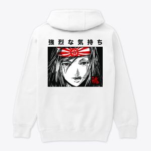 japanese girl face illustration in manga style with a slogan print design translation is intense feelings.