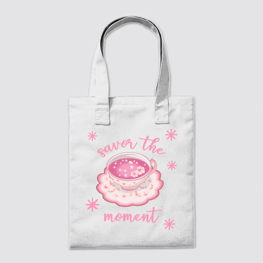 [Eng] Add a touch of softness to your daily look with this aesthetic pink tote bag, Perfect for tea lovers, wellness fans, and kawaii aesthetic lovers. Carry your essentials in style while spreading mindful vibes.