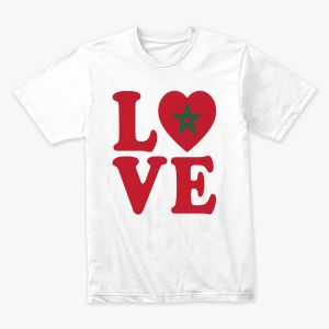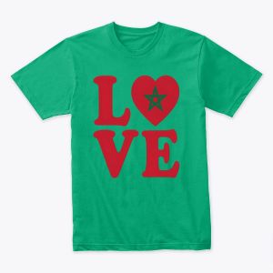 the image creatively combines the word love with a heart bearing the moroccan star symbolizing affection and pride for morocco