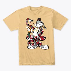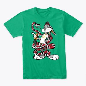 Turn heads with this bold and edgy Bugs Bunny x Snake designer t-shirt, blending iconic cartoon nostalgia with luxury streetwear vibes. Featuring a stylish graphic of Bugs Bunny wrapped in a red, black, and white serpent—reminiscent of Gucci’s Kingsnake motif—this tee is a perfect mix of pop culture and fashion-forward attitude. Made from premium cotton for ultimate comfort and durability, it’s ideal for fans of animated icons, urban fashion, and statement pieces. Whether you're into hip-hop aesthetics, street style, or luxury mashups, this tee brings serious drip.