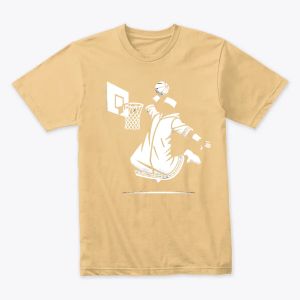 Moroccan Hoops – Flying in Style | Basketball Player in Mid-Air Wearing Djalaba Art