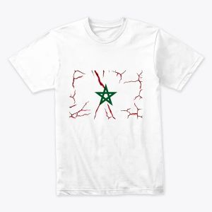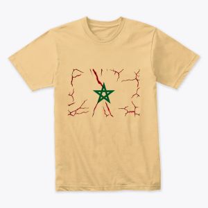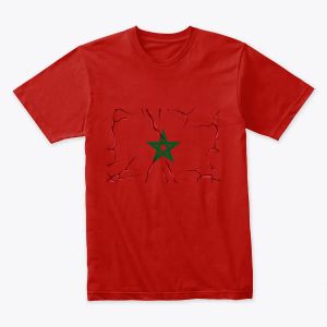 a green moroccan star is centered on a chaotic red cracked background blending cultural symbols with abstract art