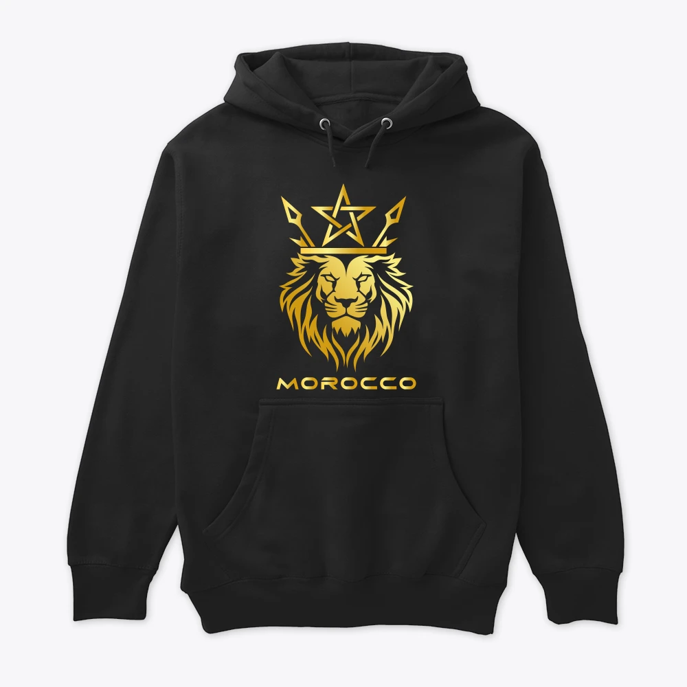 احتفال بالهوية المغربية، يجمع بين رمزية أسد الأطلس (الذي يمثل القوة والشجاعة) والتاج الملكي الأنيق والنجمة الخماسية الخضراء (التي أصبحت ذهبية هنا لمزيد من الفخامة).