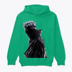 a striking profile of an anime ninja with silver hair wearing a black mask and cloak the minimalist design and dramatic lighting highlight the characters mysterious aura