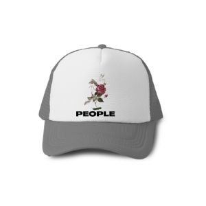 This design features a vibrant and colorful mural showcasing a flower and the word 'people.