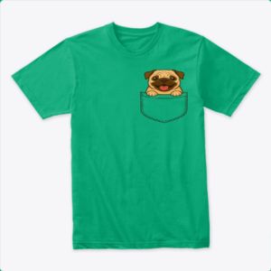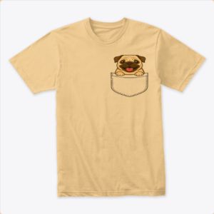 A cute pug popping out of a denim-style pocket! Perfect for dog lovers who adore playful, funny, and stylish pet designs. Great for apparel & gifts.