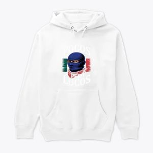 description an illustrated figure wearing a balaclava and skullpatterned bandana is set against the mexican flag with bold text adding an enigmatic and cultural flair
