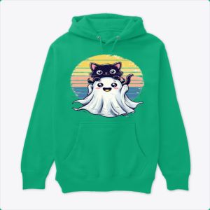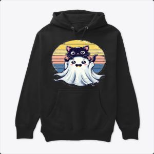 Retro Phantom Feline – Vintage Ghost Cat Trippy Design Capuche